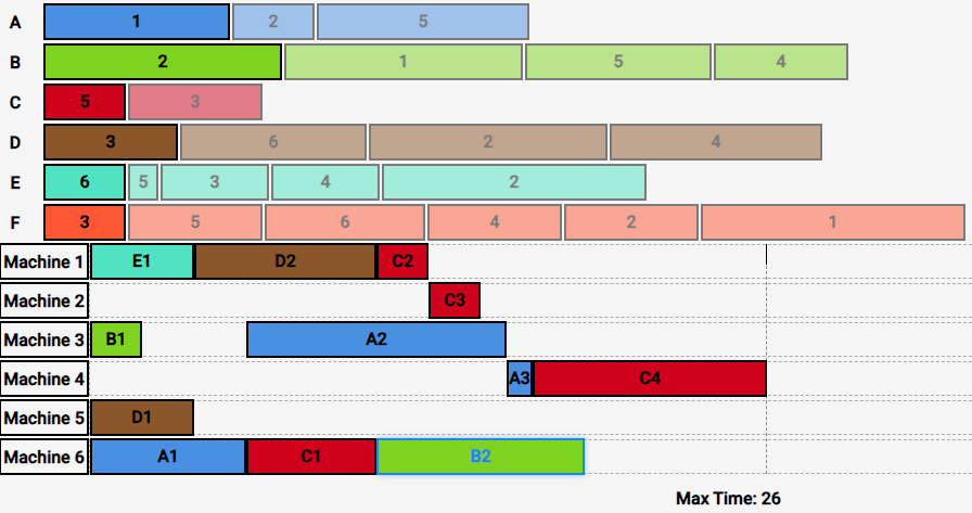 0 3 1 6 // Job 1: Machine 0 for 3 units, Machine 1 for 6 units